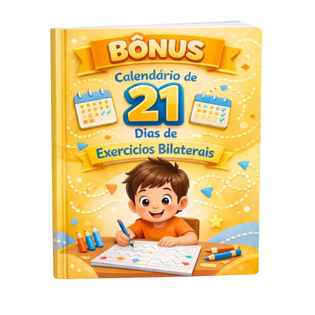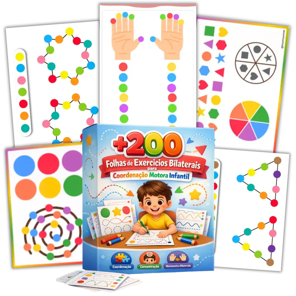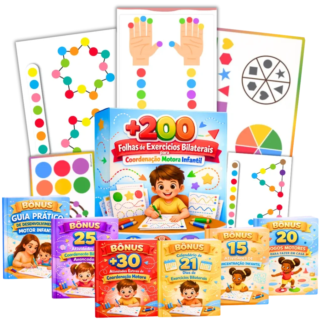 Você receberá +200 Exercícios que trabalham os dois lados do corpo e do cérebro, ajudando no desenvolvimento motor, na concentração e no controle corporal da criança