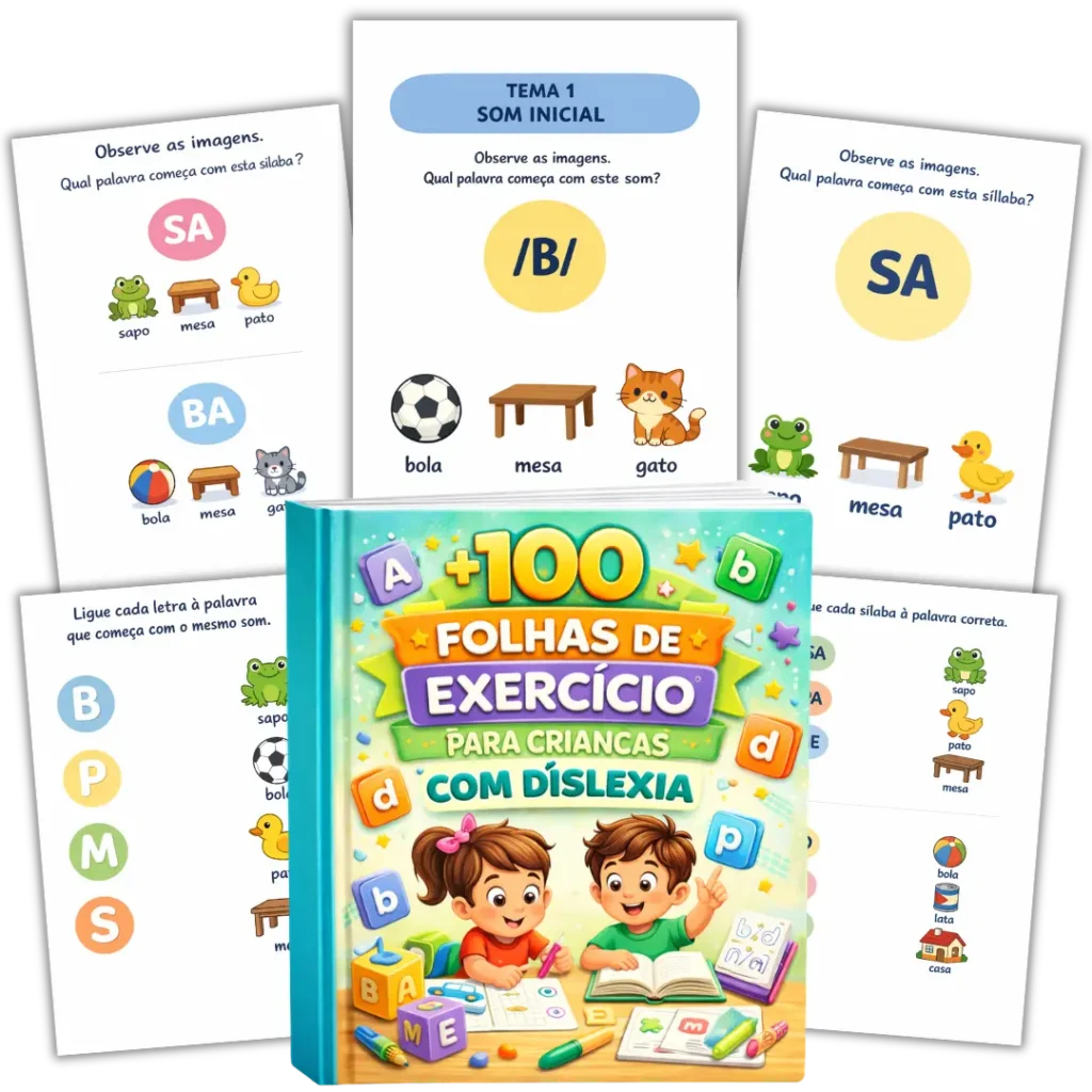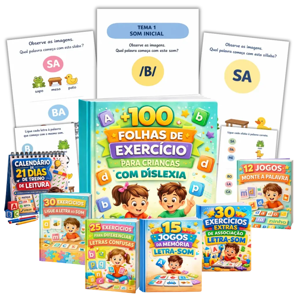 Você receberá +200 Exercícios para crianças com dislexia treinarem a associação entre letras e sons e desenvolver a leitura