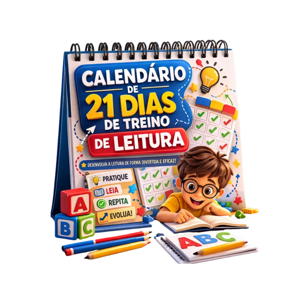 Um calendário organizado de atividades para aplicar diariamente e estimular a leitura da criança de forma progressiva.